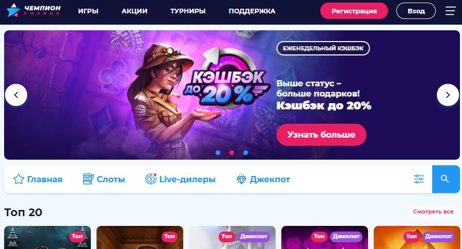 Игорный дом Чемпион ведет свою деятельность с 2025 года и основной упор делает на привлечение новых игроков и расширение ассортимента предлагаемых игр и бонусов.