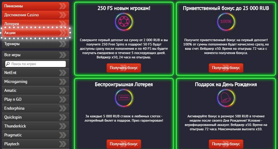 - наличие фриспинов за минимальные депозиты и промокоды;