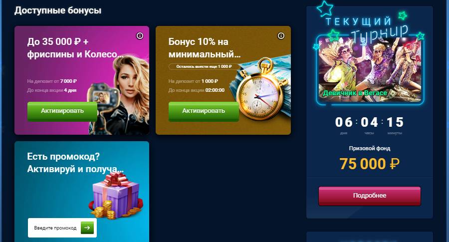Бонусы, предоставляемые казино Вулкан 24, достаточно скромные. Еженедельные турниры дают гораздо больше возможностей заработать.
